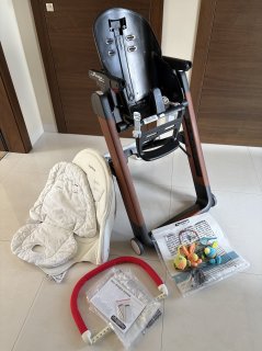 Prodám velice zachovalou jídelní židličku Peg Pérego Siesta Folow Me Ambiance Brown včetně hrazdičky a vložky, vše viz. foto, po jednom dítěti